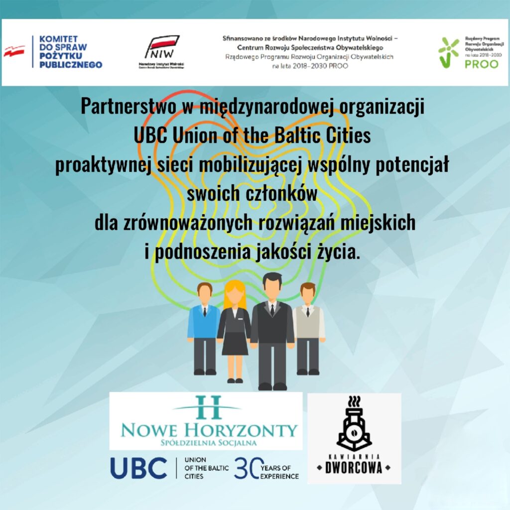 Dzięki wsparciu Narodowego Instytutu Wolności możemy być partnerem międzynarodowej organizacji Union BALTIC CITIES, sieci mobilizującej potencjał swoich członków dla zrównoważonych rozwiązań miejskich i podnoszenia jakości życia.